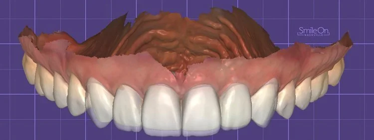 Figure 2. Primary Digital Simulation: proposed tissue adjustments to achieve a more aesthetic height/width ratio. Gingivectomy planned for teeth 6-11. Veneers planned for 6 & 11.